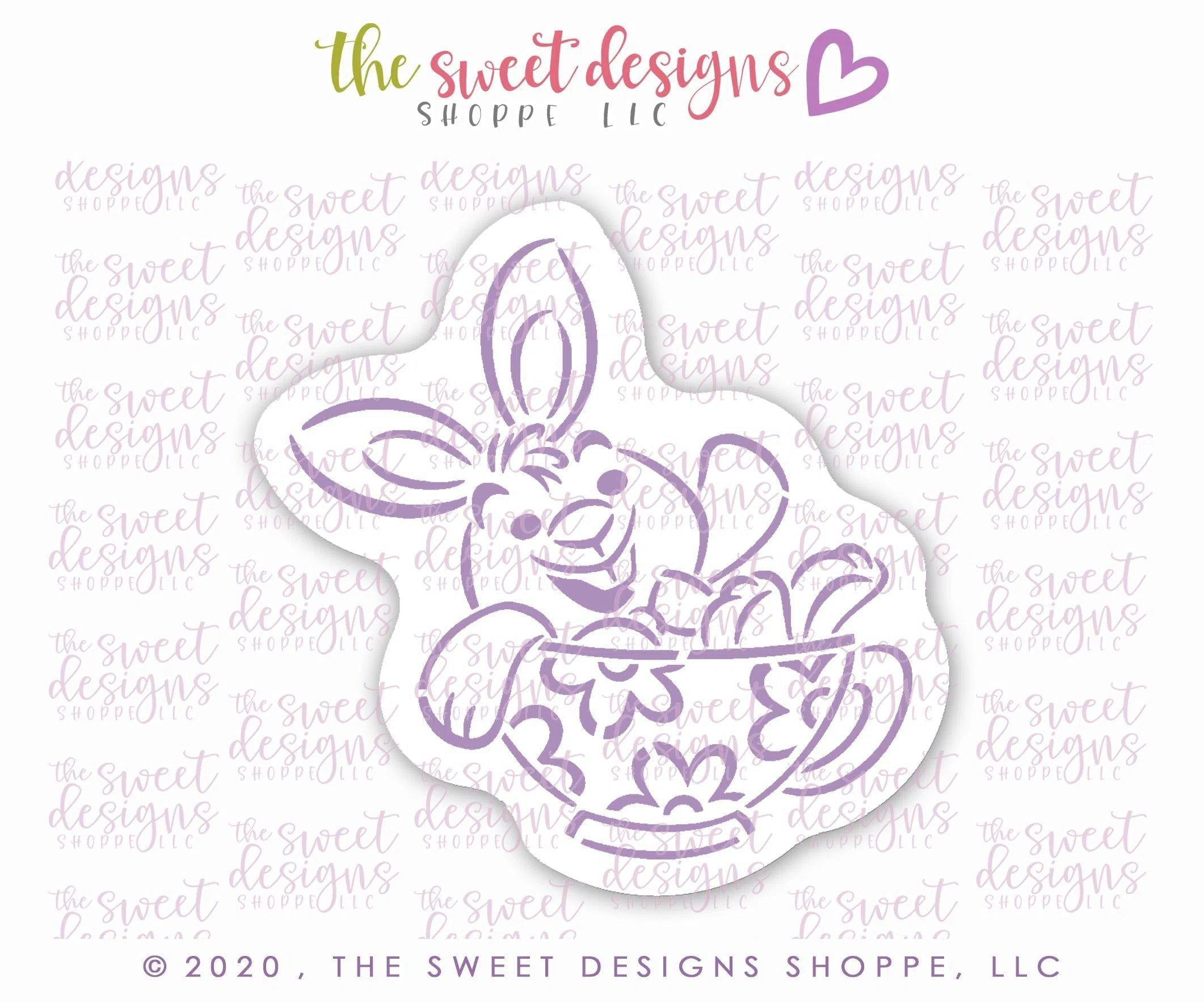 Bundle - PYOC Bunny in a Tea Cup - Cookie Cutter and Stencil