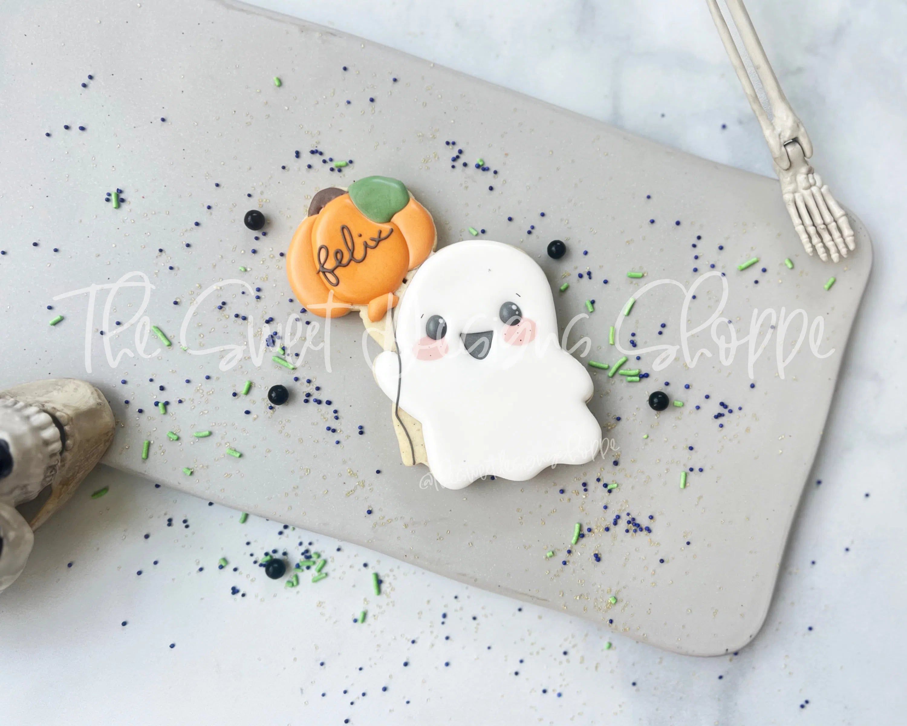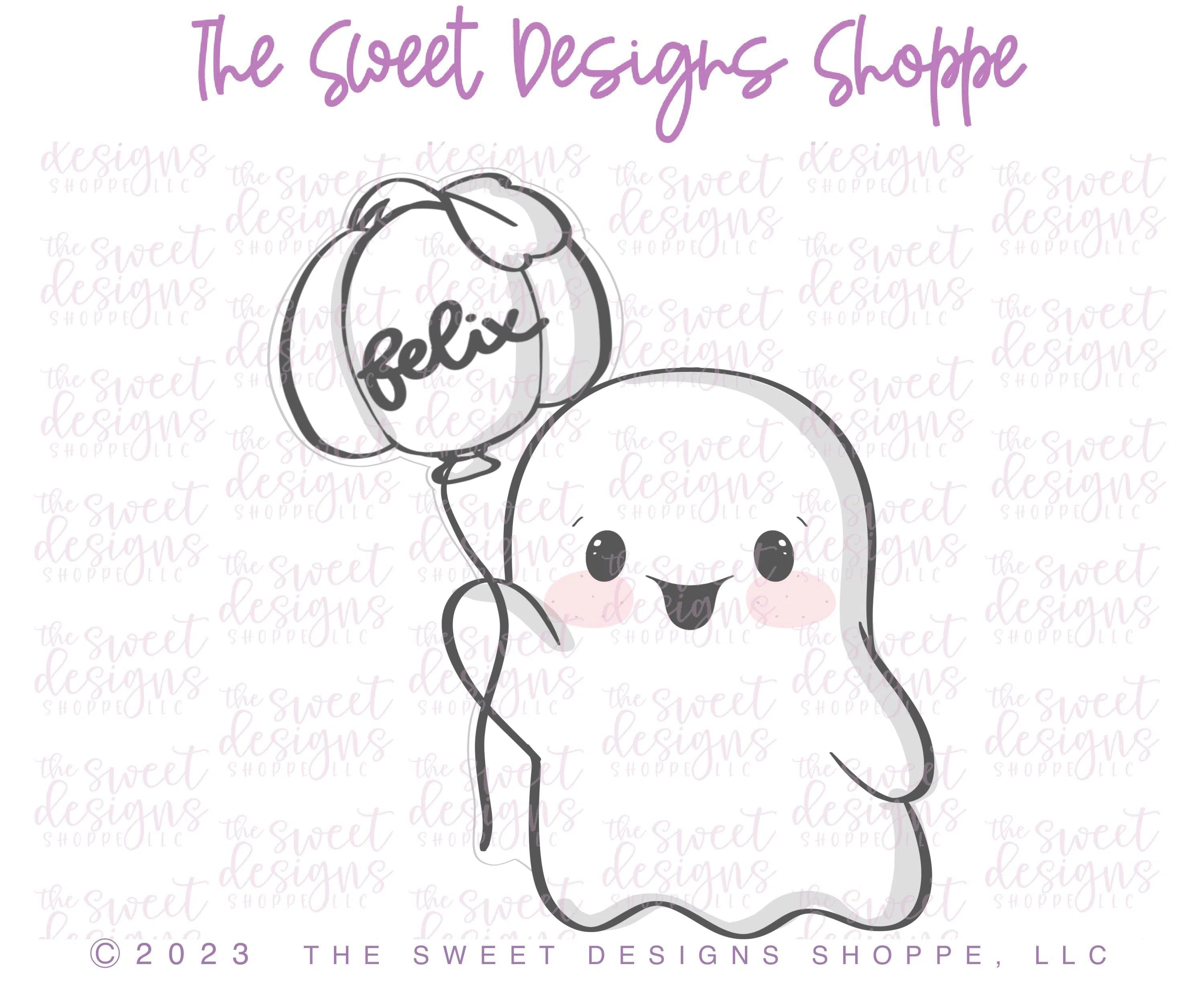Ghost Holding Pumpkin Balloon - Cookie Cutter